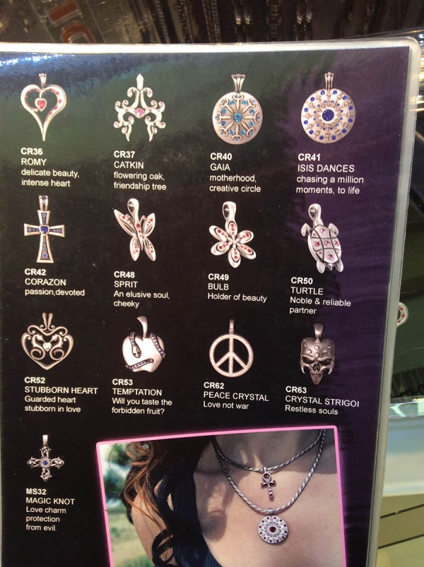 Каждая подвеска, как уже было сказано, имеет своё значение. Это и стрекоза – начало новой страницы в жизни, и череп – сильный духом, и все возможные сердечки – любовь моё предназначение, ты моя судьба. В книги «значений» больше трёхсот изделий, и конечно, запомнить роль каждого практически нереально. Но с каждым рабочим днём и работой с клиентами ( и постоянными проверками всего на своих местах) ты начинаешь запоминать все больше и больше. А это повышает твою производительность.